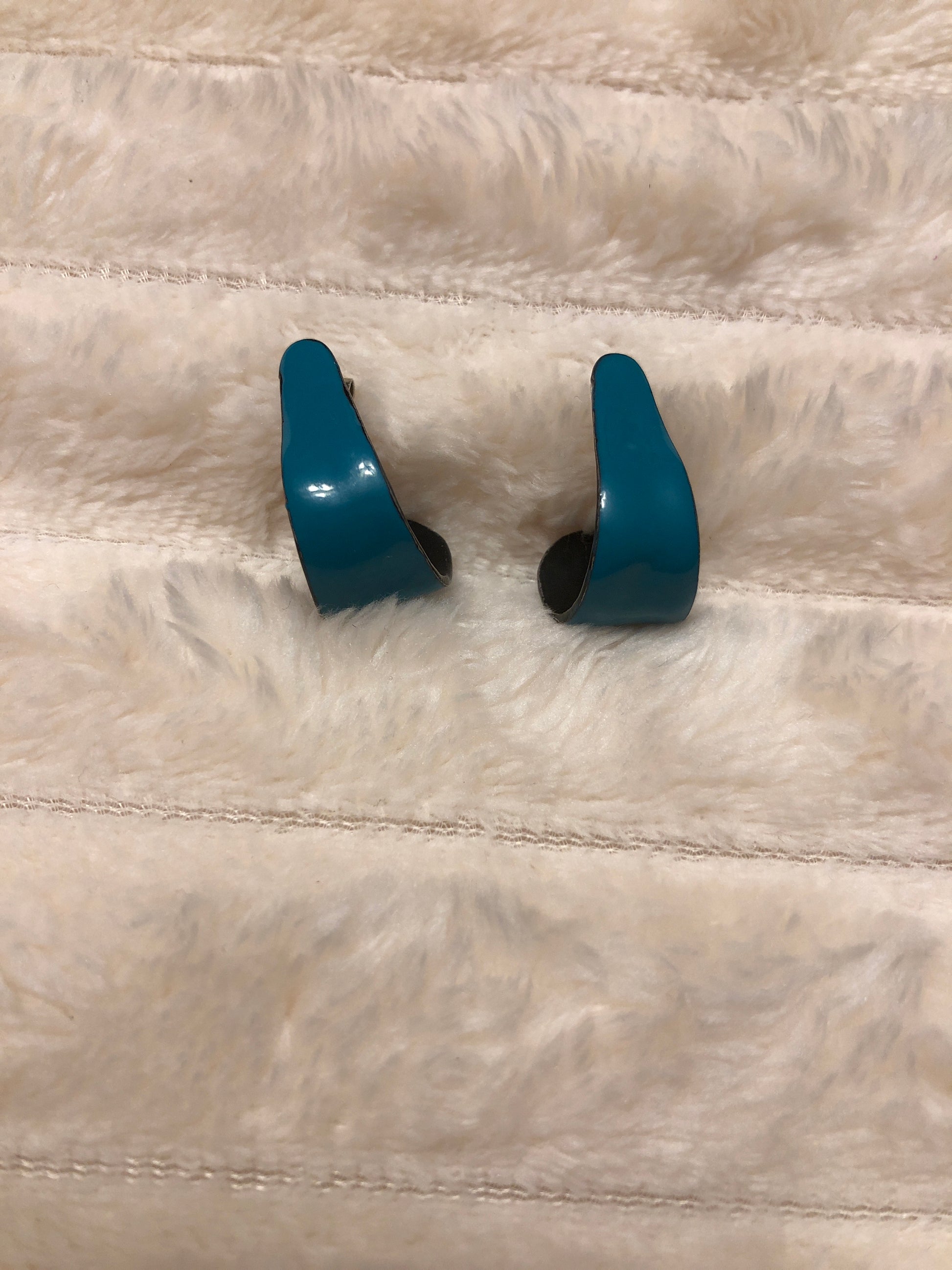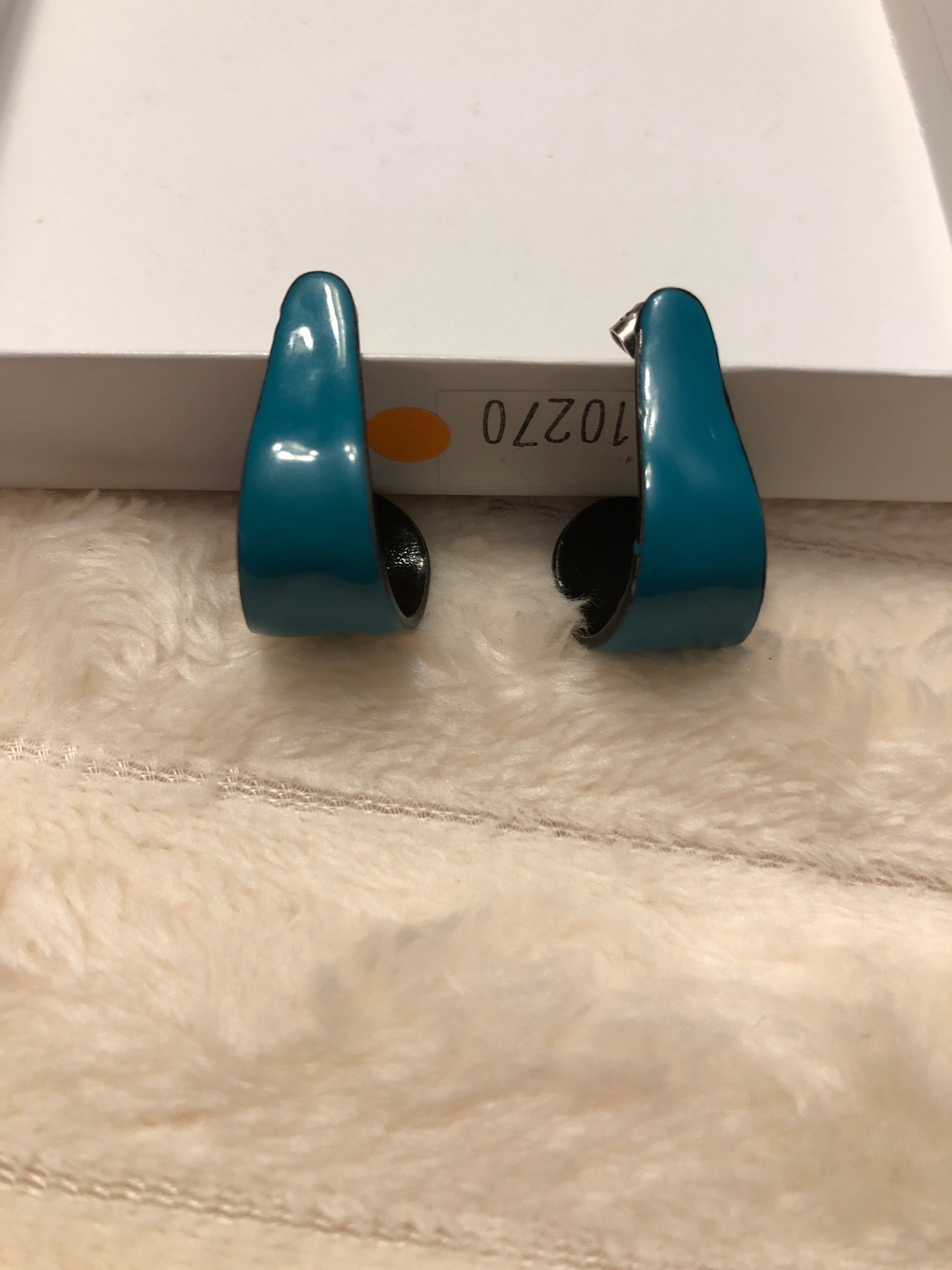 Boucles d’oreilles demi-créoles en résine turquoise brillante, design simple et élégant.