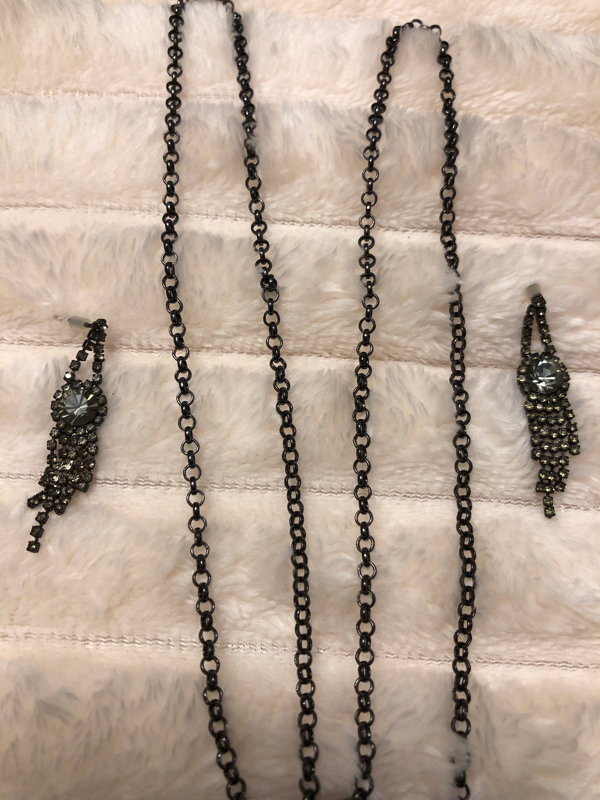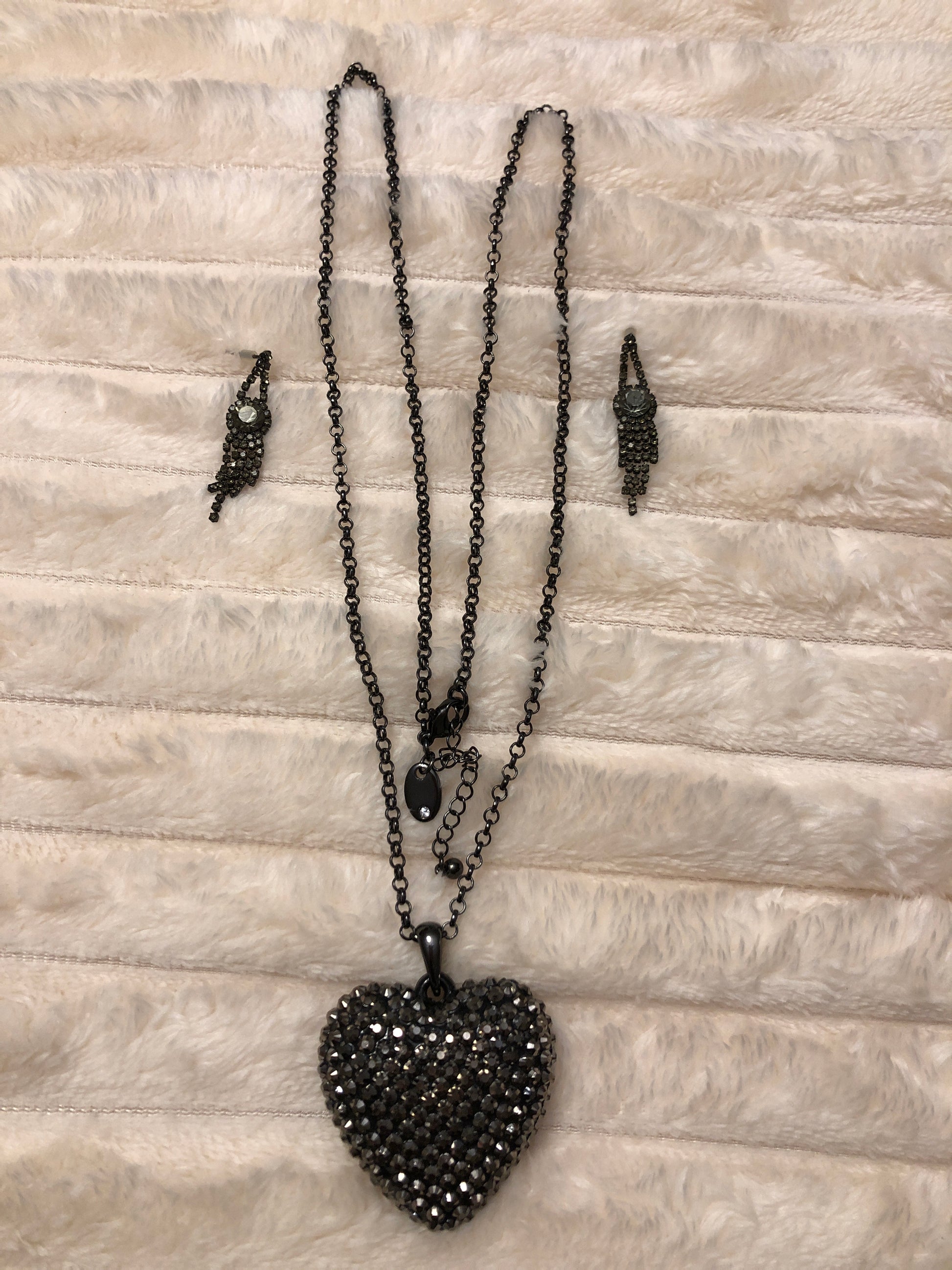 # 70 Parure vintage collier cœur strass noirs et boucles assorties