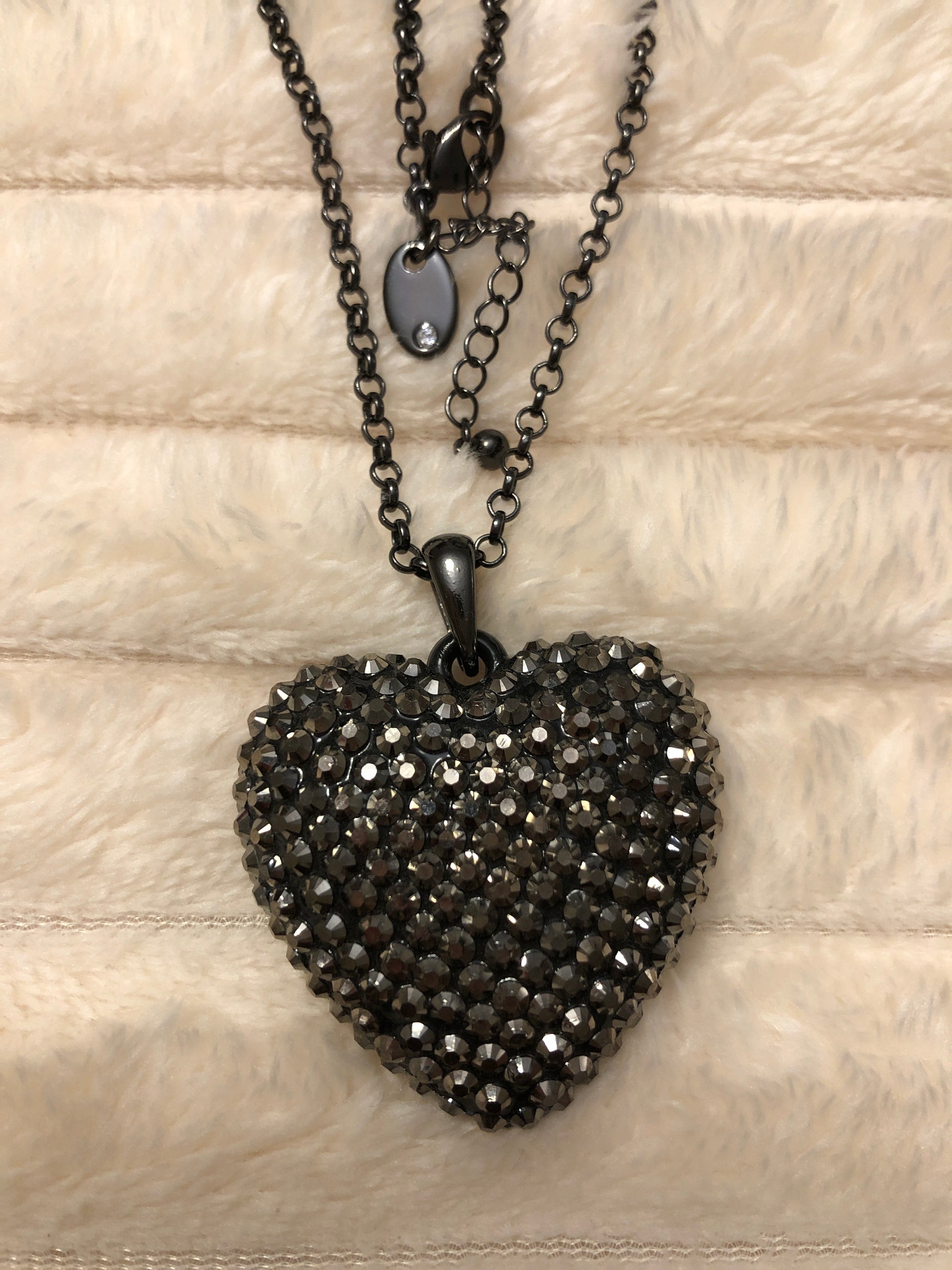 Ensemble bijou élégant composé d’un collier long avec pendentif cœur en strass noirs