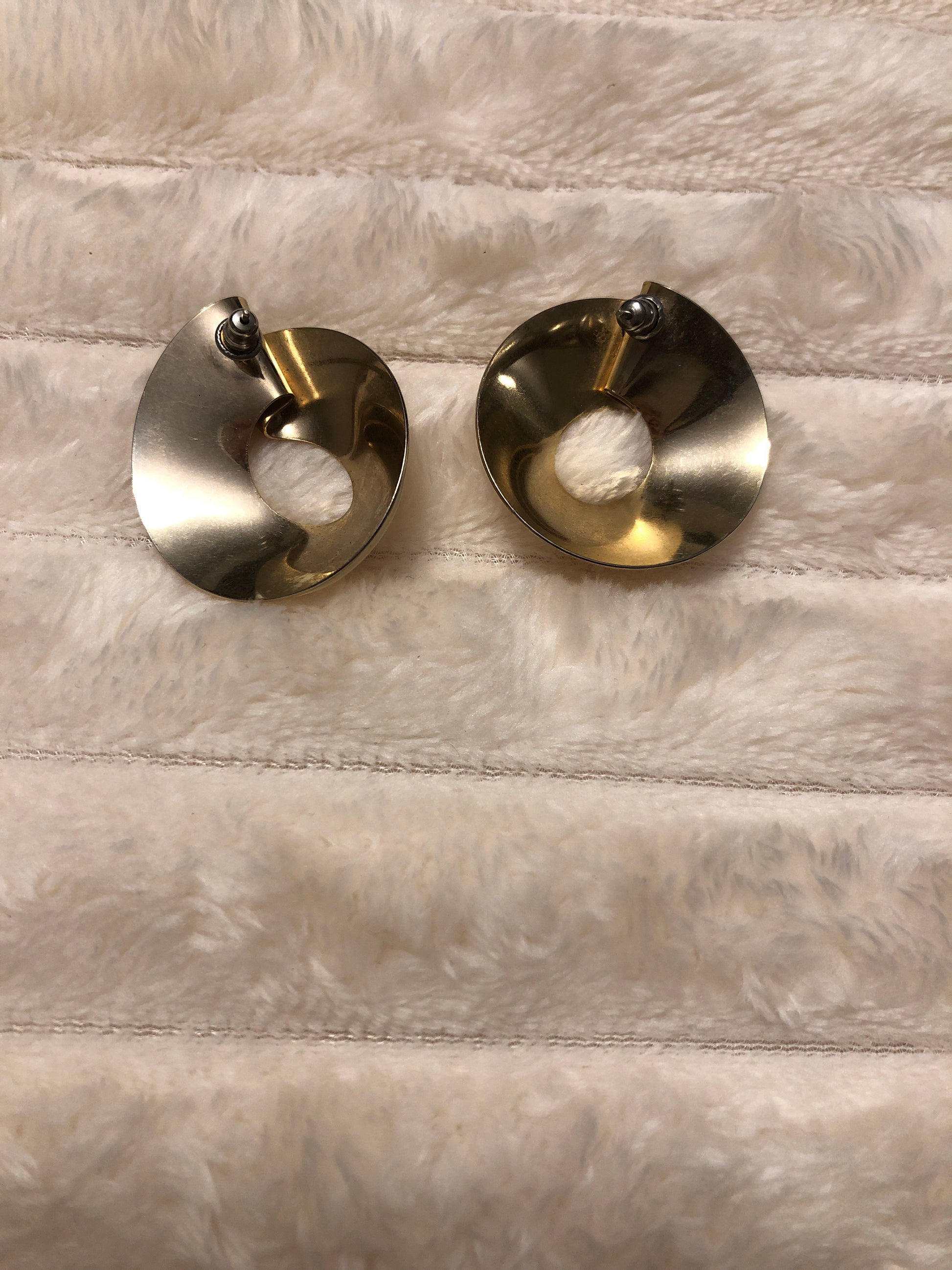 Boucles d’oreilles au design rétro audacieux, rondes avec ouverture centrale.